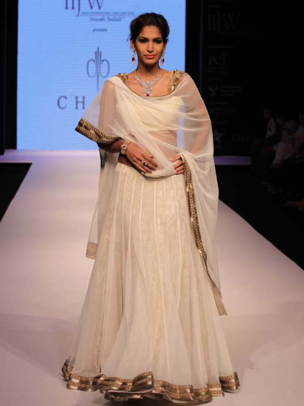 Ivory Net Lehenga with Sheer Dupatta & Golden Border