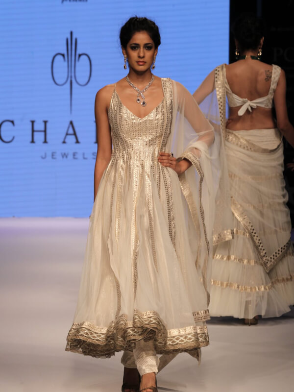 Ivory Sculpted Anarkali with Metallic Thread Detailing